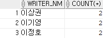COUNT(DISTINCT WRITER_NM) "작가(명)"