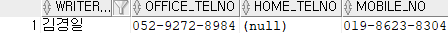 -- 가장 먼저 표시되는 작가 이름과 사무실 전화번호, 집 전화번호, 휴대폰 전화번호를 표시하는 SQL문 작성
