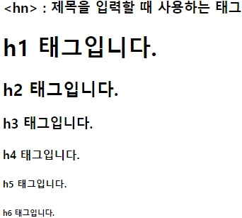 <h3><hn> : 제목을 입력할 때 사용하는 태그</h3>