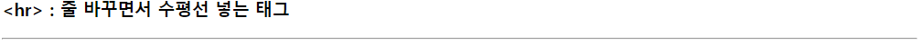 <h3><hr> : 줄 바꾸면서 수평선 넣는 태그</h3>