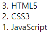 - 속성으로서 순서 형식을 정하는 type, 시작 순서를 명시하는 start, 역순으로 표시하는 reversed를 쓸 수 있다.