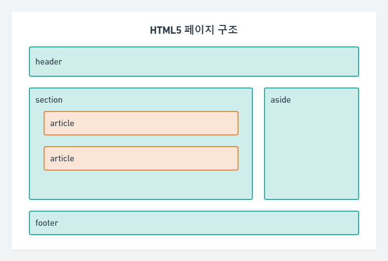 - HTML5에 들어 시맨틱 태그(semantic tag)가 적용된 모습이다.