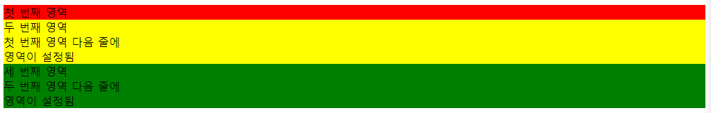 - <div> 태그는 이미 존재하는 태그 다음 줄에 영역이 설정된다.