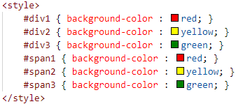 ① 태그마다 id를 부여하고, <head> 내부에 <style>을 작성한다.
