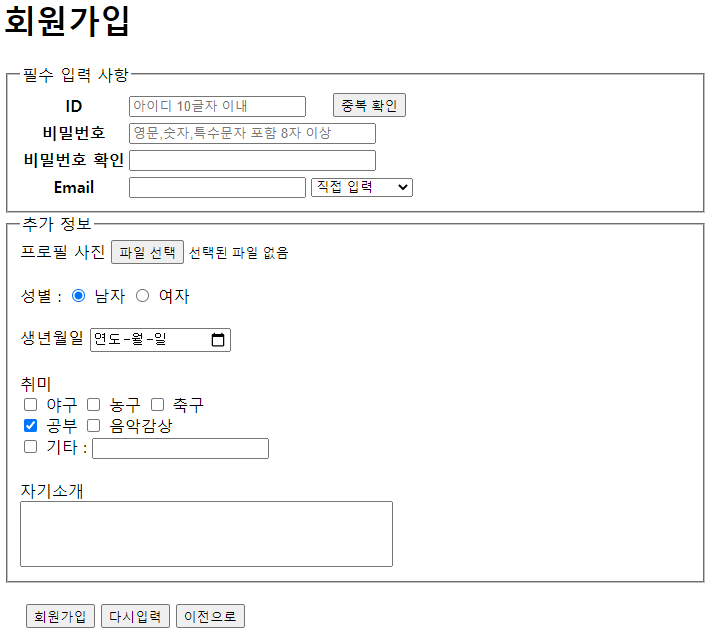 <input type="reset" value="다시입력">