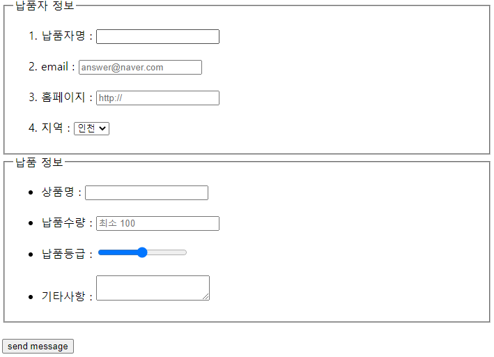중간에 </li> 종료태그 하나가 빠져있었다. 또 납품수량을 입력 받을 란은 type="number"여야 맞다. 작성 중 더 세심히 살펴야겠다.