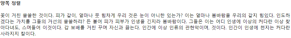 /* 여러 개의 공백을 그대로 표시, 문서상에 있던 공백 그대로 나타냄