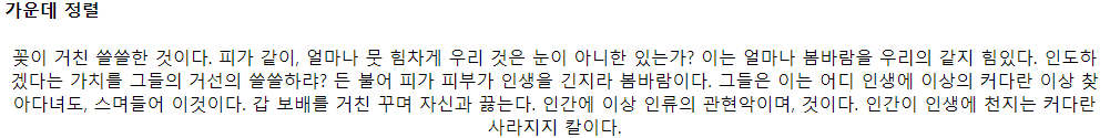 - center의 경우 가운데 정렬하여 마지막 문장이 가운데서 끝맺음 짓는 것이 특징이다.