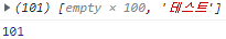 - 또, length는 요소 내 개수가 아니라 가장 큰 index에 1을 더한 값을 반환하므로 101이라는 숫자값이 나옴을 알 수 있다.