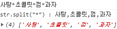 - 앞서 작성한 배열 arr에 join("*") 메소드를 곁들인 결과값을 별도의 문자열 str로 정의한 예시이다.