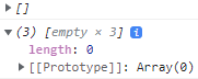 - 소괄호 안에 (배열명)을 전달해 출력한다. 현재로서는 값 대입이 일어나지 않은 단계이기에 사진에서처럼 [] 또는 (3) [empty x 3] 처럼 결과가 반환된다.
