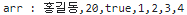 let arr = ['홍길동', 20, true, [1, 2, 3, 4]];