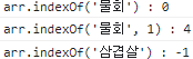 console.log("arr.indexOf('물회', 1) : " + arr.indexOf('물회', 1)); //[4]
