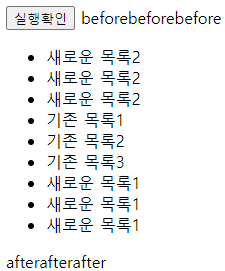 before/after는 노드 이전/이후에 삽입이 치러진다. 버튼을 클릭할 때마다 지정한 텍스트가 계속 추가된 모습을 확인할 수 있다.