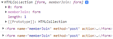 - pwd1, pwd2 둘 다 동일한 함수가 들어가므로 실사용 시에는 별도 함수와 변수를 정의해 사용하는 것이 좋겠다. id, name 속성값에 직접 접근하는 것은 오류 발생 가능성에 대비하여 삼가야 하기 때문이다.