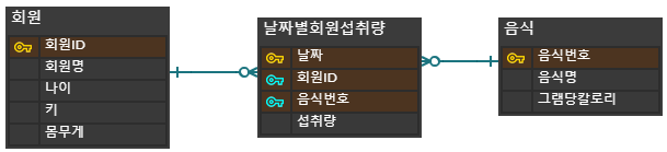 2차 정규화 실습2. 회원, 날짜별회원섭취량, 음식 ✅