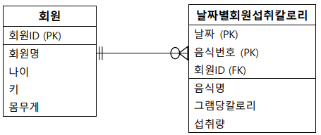 2차 정규화 실습2. 회원, 날짜별회원섭취량, 음식 ✅