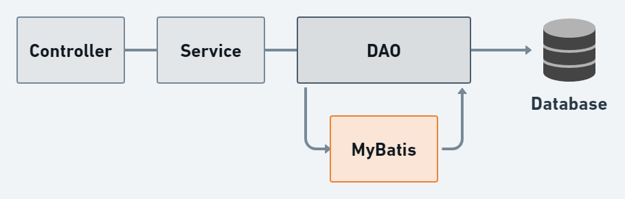 - 앞서 JDBC를 학습하는 동안 DAO(데이터 접근 객체, Data Access Object) 단계에서 일일이 작성해 조회 및 가공하던 Connection, PreparedStatement, ResultSet들을 MyBatis 전용 라이브러리로 대체할 수 있다.