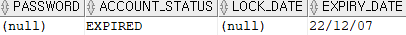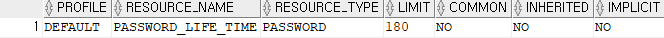 SELECT * FROM DBA_PROFILES WHERE PROFILE = 'DEFAULT' AND RESOURCE_NAME = 'PASSWORD_LIFE_TIME';