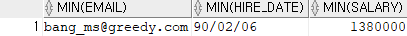 - 취급하는 자료형은 ANY TYPE이다. MIN 함수에서는 컬럼값이 반드시 숫자가 아니어도 괜찮다.