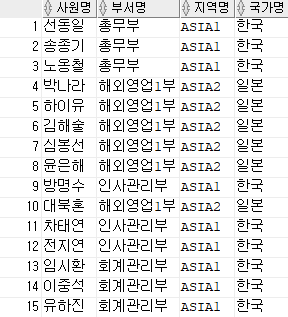 비교연산자 IN을 사용하면 조건식을 보다 간추릴 수 있다: N.NATIONAL_NAME IN('한국', '일본');