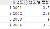 -- 단, 이때 출력 화면의 헤더는 "년도", "년도 별 평점"