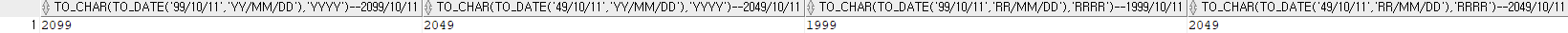 , TO_CHAR(TO_DATE('99/10/11', 'RR/MM/DD'), 'RRRR') --1999/10/11