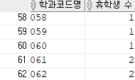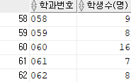 -- "학과번호", "학생수(명)" 형태로 헤더를 만든다.