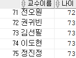 -- 세 자리에 대해서만 조건을 달았기 때문에 이름이 네 자인 교수 역시 출력되고 있다.