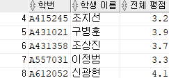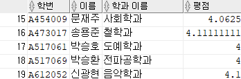 -- 그 학생의 학번, 이름, 학과 이름, 평점을 출력