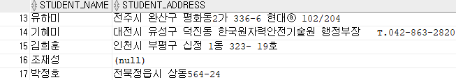 OR STUDENT_ADDRESS LIKE '강원도%')