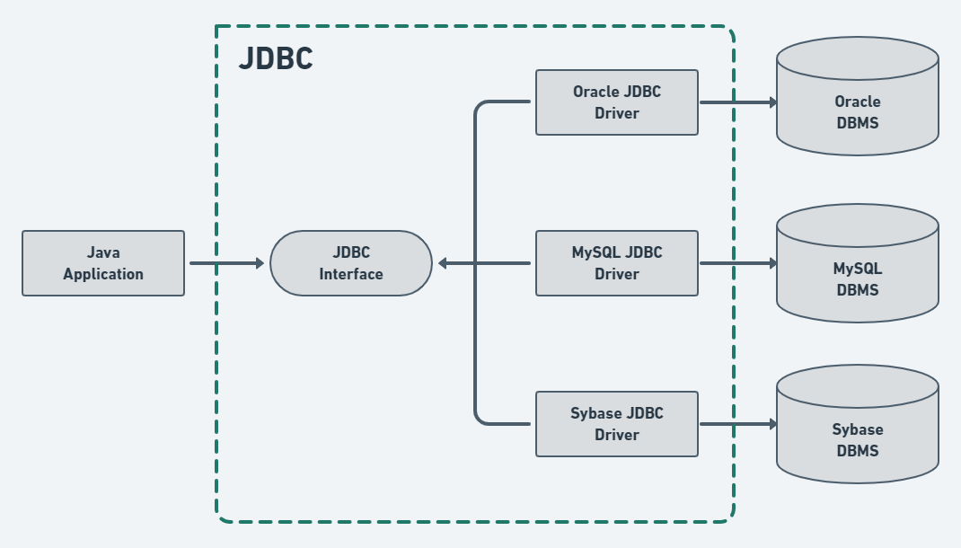 이들을 인터페이스로 정의해 놓은 것은 추상화 및 인터페이스 사용의 이점과 맞닿아있다. DBMS 드라이버마다 실질적으로 동작시키는 코드 개념은 상이하게 마련이다. 따라서 추상화된 상위 개념으로서 인터페이스로 정의된 것이다.
