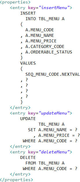 -- menu-query.xml INSERT/UPDATE/DELETE